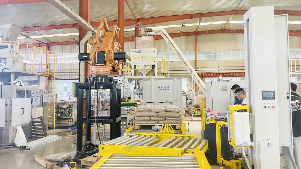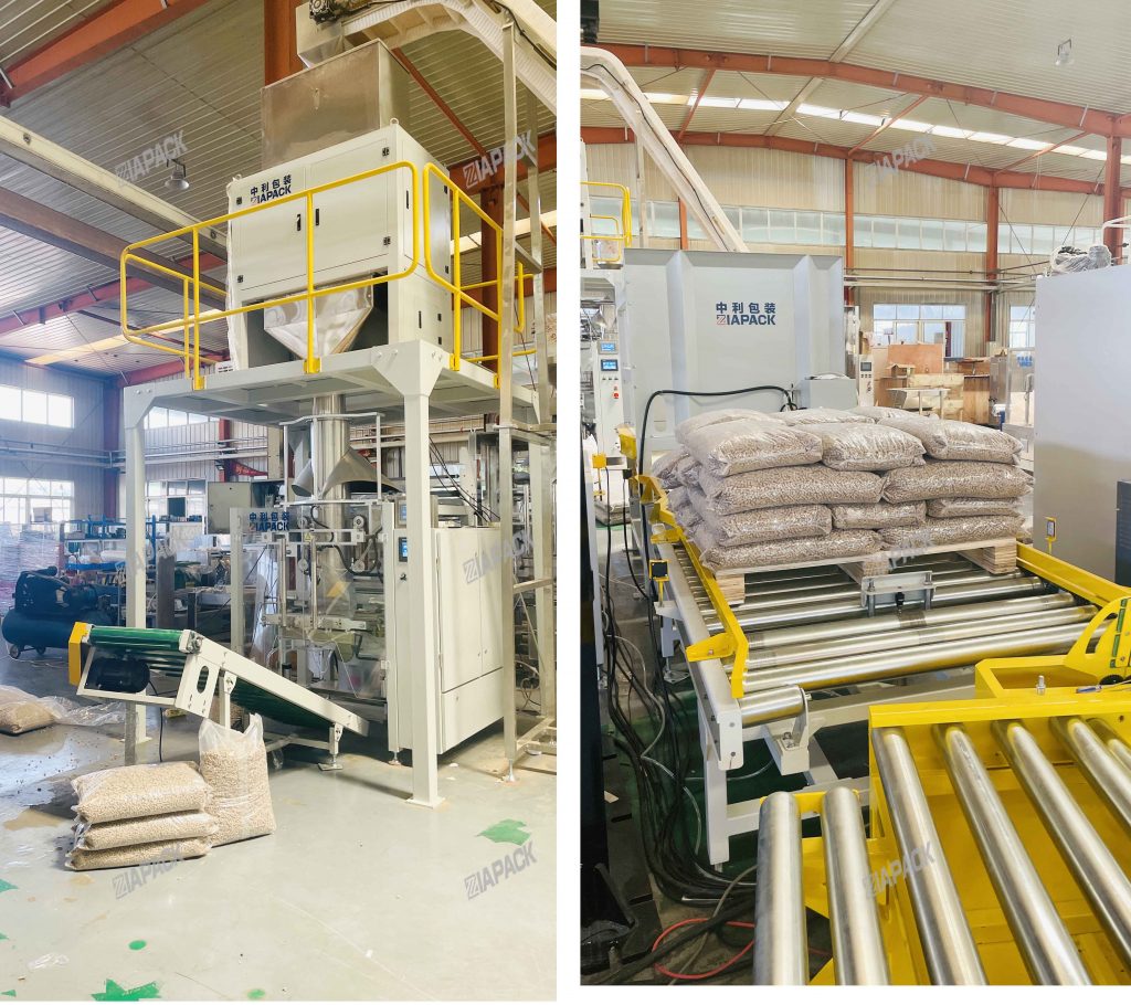 तू इथे आहेस घर » बातम्या » 15KG लाकडी गोळ्या वजनाचे फिलिंग बॅगिंग पॅलेटिझिंग लाइन वितरणासाठी तयार आहे