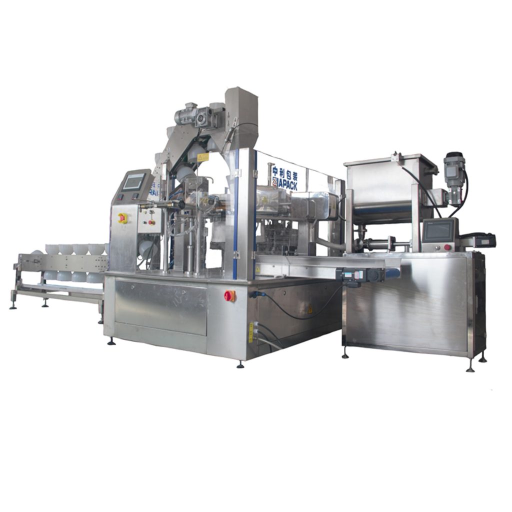 हे मशिन घन पदार्थात मिसळलेले द्रव पदार्थ भरण्यासाठी डिझाइन केलेले आहे, जसे की सूपसह लोणचे, जैतूनाचे लोणचे, लोणचेयुक्त काकडी आणि असे बरेच काही. आधीपासून तयार केलेल्या पिशवीमध्ये घन पदार्थ भरण्यासाठी वाडगा लिफ्टसह आणि नंतर पिस्टन पंप भरण्यासाठी. सॉस