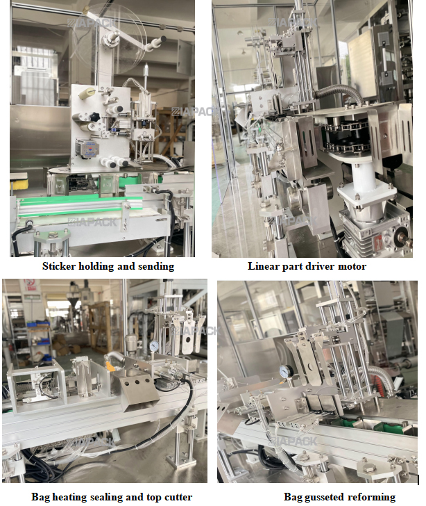 मशीन बॅग घेऊन जाईल ,एक वेळ बॅग तोंडाच्या फोल्डिंगमधून जाईल आणि नंतर लेबल चिकटवेल. SUS304 .PLC आणि टच स्क्रीनने बनवलेली मशीन फ्रेम सीमेन्स ब्रँडने स्वीकारली आहे .आणि वायवीय भाग एसएमसी ब्रँड स्वीकारतात .मुख्य इलेक्ट्रिकल घटक ओमरॉन आणि श्नाइडर ब्रँड स्वीकारतात .