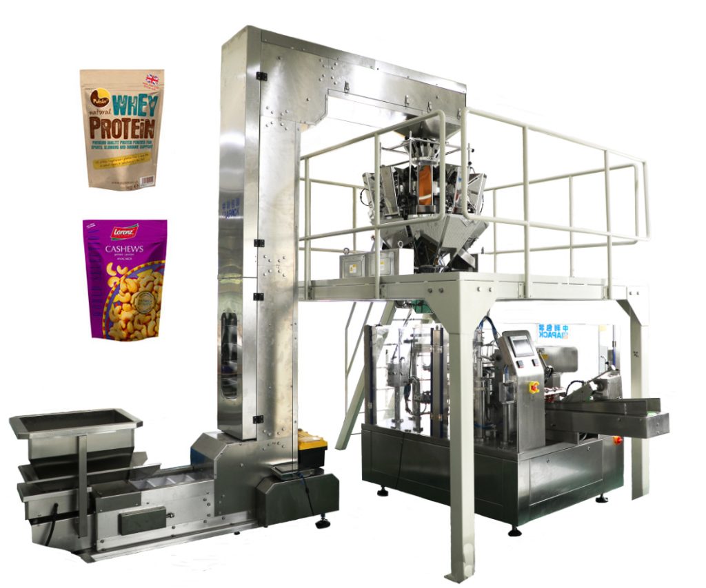 रोटरी बॅग-दिले पॅकिंग मशीन वेगवेगळ्या डोसिंगसह (जसे मल्टीहेड वेजिअर, ऑगर फिलर, लिक्विड फिलर इत्यादी) ग्रॅन्युलर, पाउडर, द्रव, पेस्ट इत्यादीसाठी स्वयंचलित पॅकिंगसाठी उपयुक्त असू शकते. प्रीडेड स्टँड-अप जिपर पाउच आणि इतर बर्याच प्रकारचे उत्पादन.