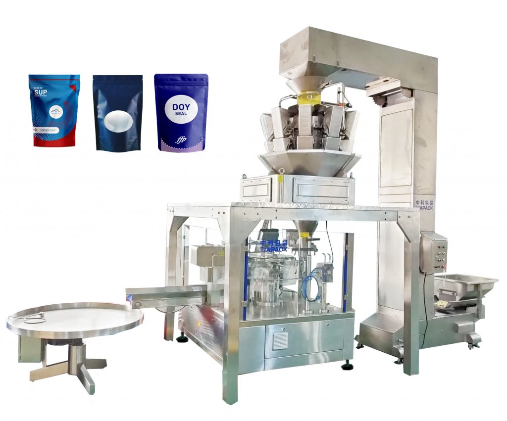 कार्यक्षमतेच्या आणि स्थिरतेच्या 8 कार्यस्थळांद्वारे तयार केलेले पूर्व-निर्मित पाउच भरणे आणि सील मशीन, स्टँड-अप बॅग, जिपर बॅग, स्पॉट बॅग आणि विविध पूर्व-निर्मित पाउचच्या पॅकेजवर जोर देते. वेगवेगळ्या डोसिंग सिस्टमसह (मिश्रित / रेशीम वगीर / ऑगर स्क्रू / पिस्टन फीलर) आणि स्वयंचलित उठविणारे कन्वेयरसह सहकार्य केले जाते, ते ग्रॅन्युल, द्रव आणि पावडरसाठी व्यापकपणे वापरले जाते.