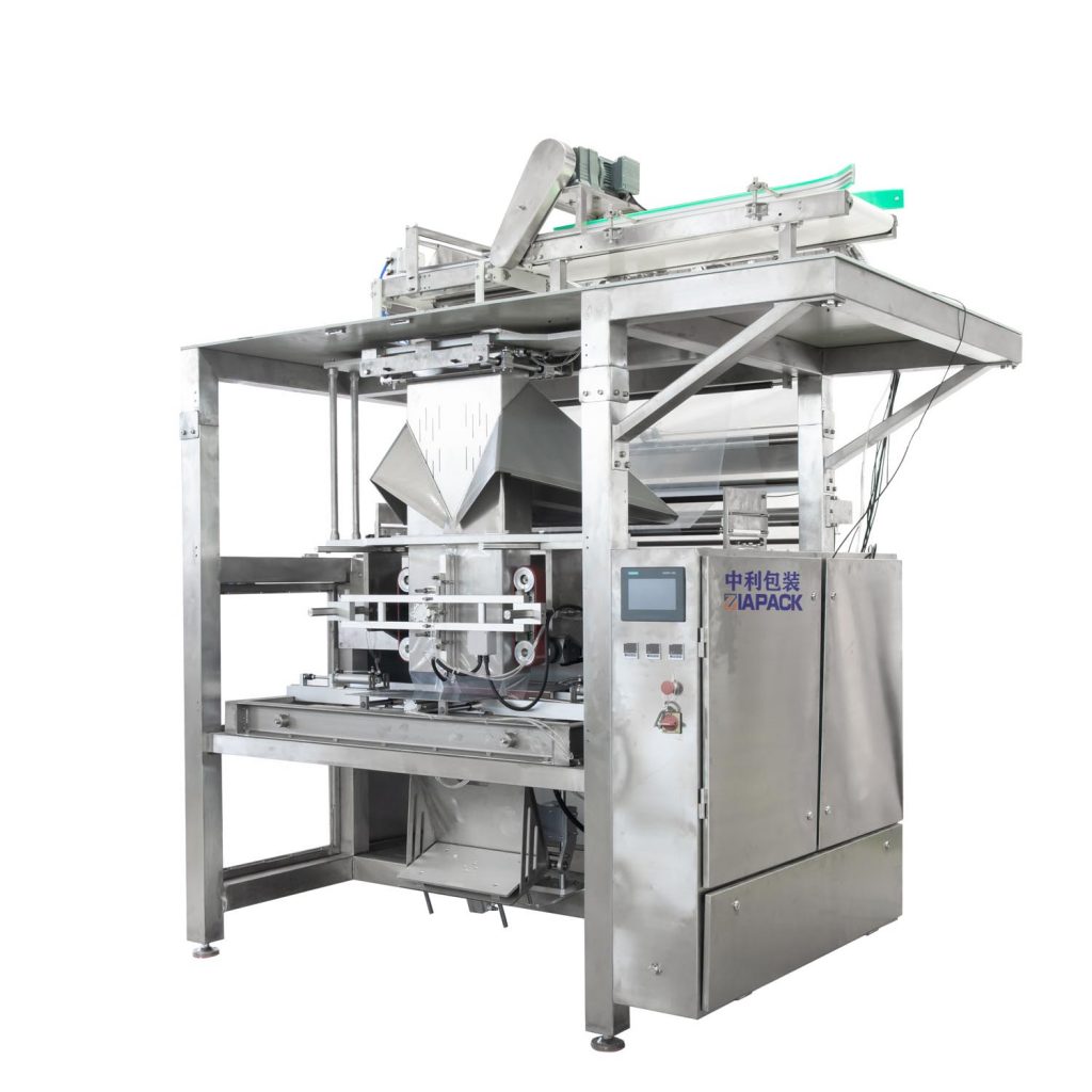 हे मशीन लहान पिशवी मोठ्या पिशवीमध्ये पॅक करण्यासाठी योग्य आहे .मशीन मोठ्या बॅगला स्वयंचलितपणे बनवू शकते आणि लहान बॅगमध्ये भरू शकते आणि नंतर मोठ्या बॅगला सील करू शकते . हे मशीन खालील युनिट्ससह:
